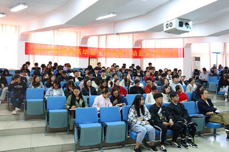 商务系于10月17日下午1:40在1号教学楼1117阶梯教室举办了“2019届商务系毕业生顶岗实习动员暨先进个人表彰大会”, 商务系2019届9个毕业班级共200多名学生代表以及商务系全体教师、辅导员参加会议,商务系主任李庆海、系党支部副书记过芹芹到会并讲话,会议由童羽昕老师主持。