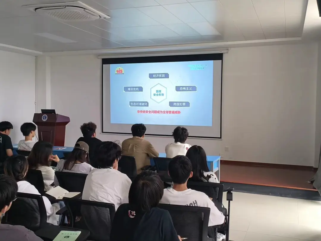 学院组织同学们在学校一站式学生社区服务中心会议室集中观看了国家开放大学联合“央视频”推出的“国开大讲堂•国家安全教育公开课”,课程内容丰富,涵盖了坦克发展史、中国国家安全战略以及生态环境风险与安全等诸多方面。各位专家的精彩讲解以及影片的生动展示,带领同学们一同感悟了新时代国家安全的丰富内涵和外延,让青年学子对国家安全有了更加全面深刻地认识。