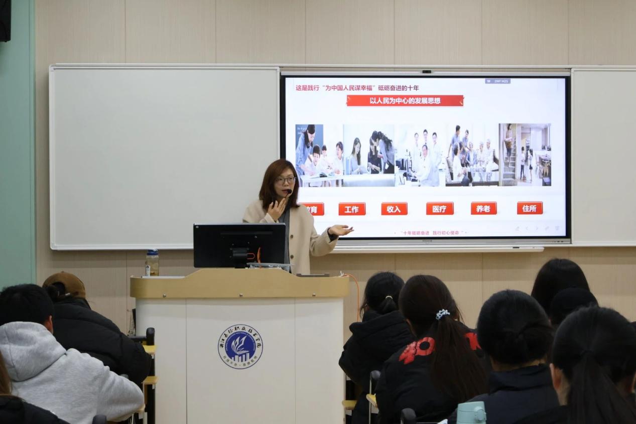 教师党支部书记赵素君老师带领学员回顾党的十八大至二十大十年奋进历程,展现党在经济、科技、民生等领域的卓越成就,彰显中国共产党人的初心和使命,就是为中国人民谋幸福,为中华民族谋复兴的使命担当。