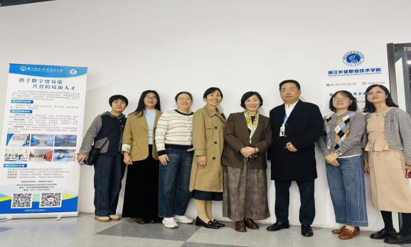 近日,以“数字领航,纺都新篇”为主题的轻纺数字贸易港跨境电商创新中心发布及相关配套推介会活动在绍兴举行。商务与贸易学院(以下简称:“商贸学院”)院长王珍、党总支书记余泓一行8人受邀出席,与近200位政企代表共同见证这一重要时刻。此次活动不仅是商贸学院对接产业前沿的生动实践,更标志着双方在共育跨境电商人才的道路上迈出了坚实的一步。